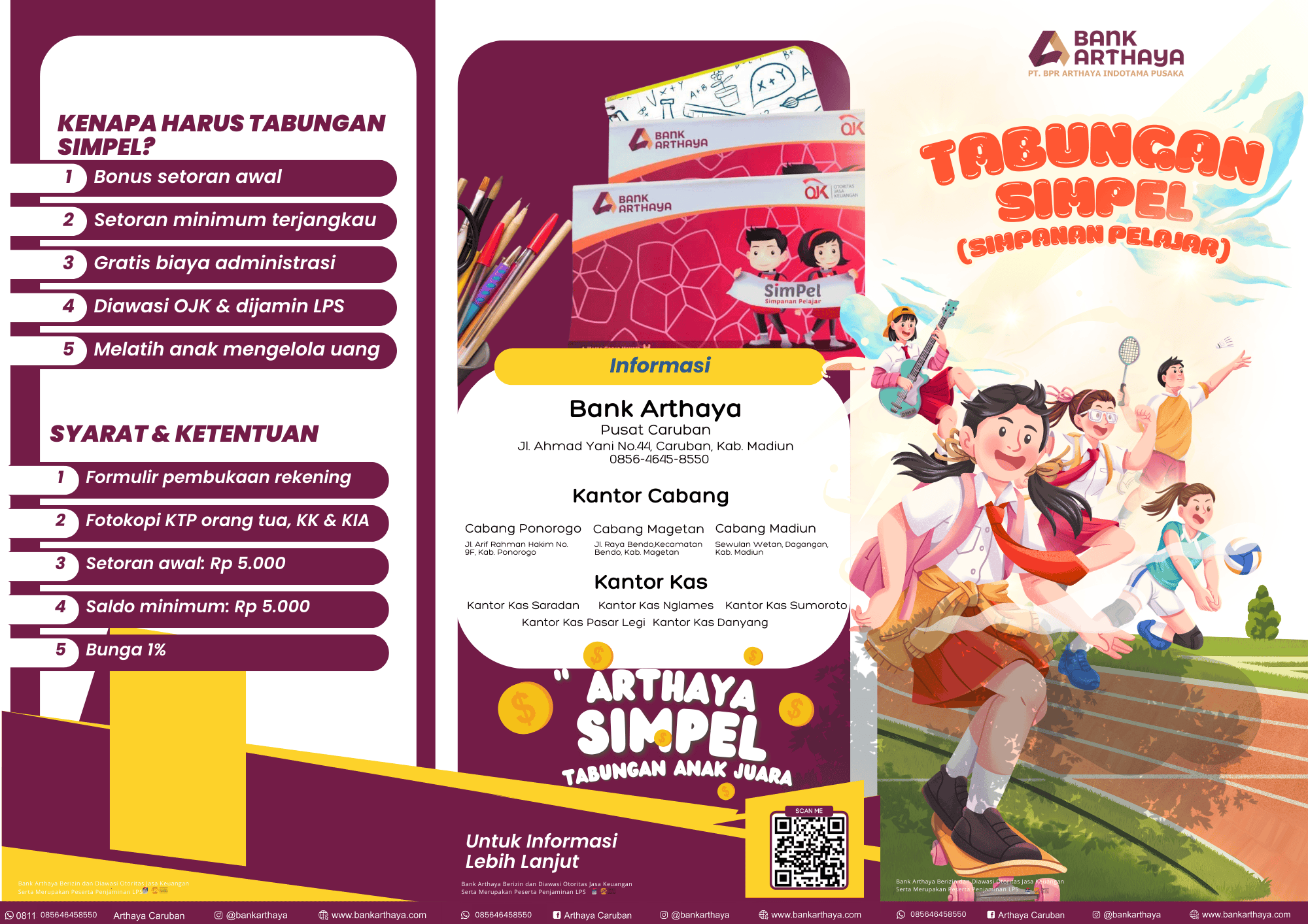 Madiun – Literasi keuangan perlu ditanamkan sejak dini agar anak-anak terbiasa mengelola uang secara bijak. Salah satu langkah sederhana adalah membiasakan mereka menabung. Dengan menabung, anak belajar disiplin, sabar, dan memahami nilai uang—sebuah dasar penting sebelum mengenal dunia investasi. Untuk mendukung hal ini, Bank Arthaya menghadirkan produk Tabungan SimPel (Simpanan Pelajar) bagi siswa mulai PAUD, [...]